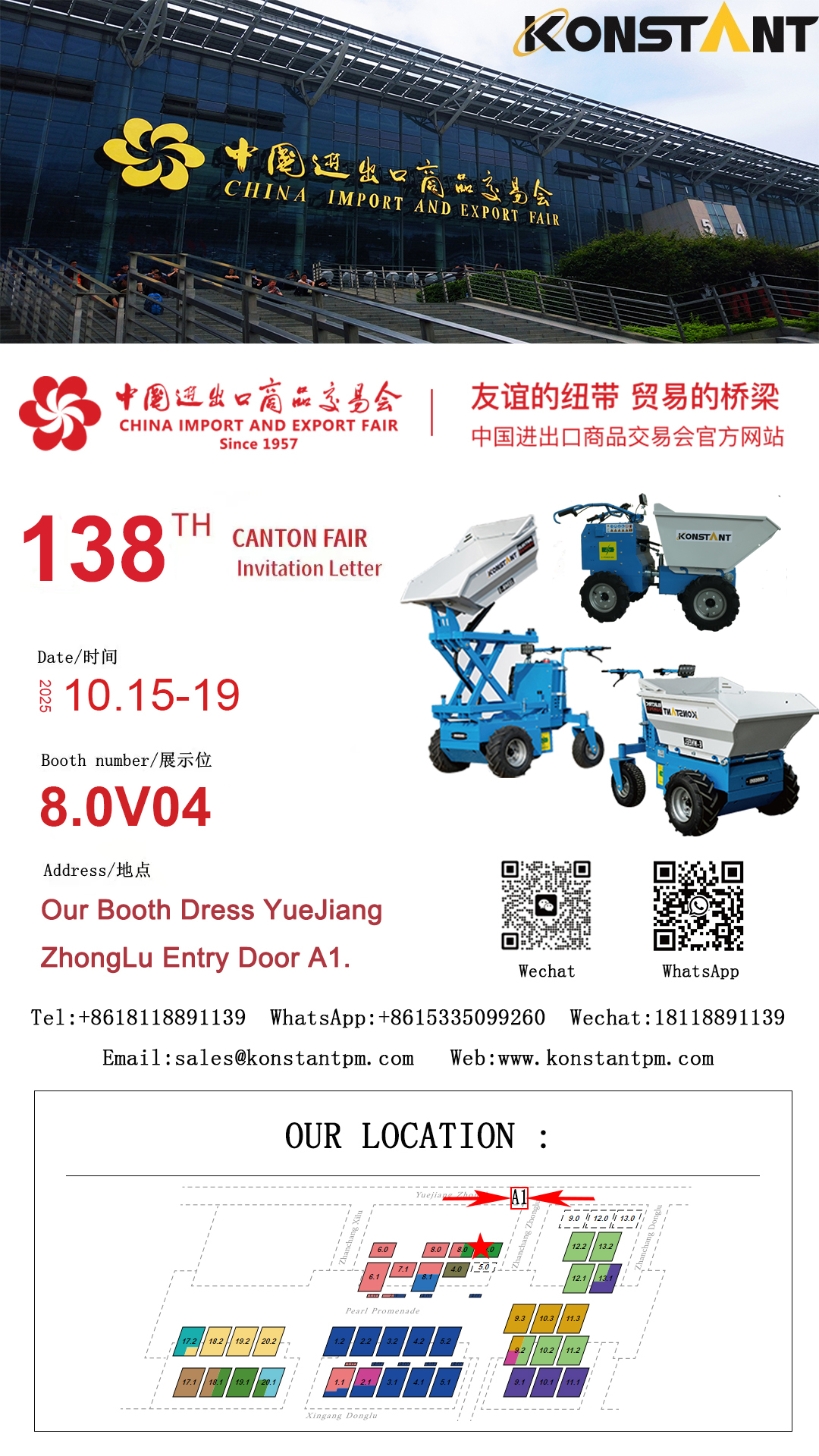 Konstant ผู้ผลิตอุปกรณ์อุตสาหกรรมเยอรมันได้รับเชิญให้เข้าร่วมใน Canton Fair ในปีนี้และจัดตั้งบูธเฉพาะที่บูธ 8.0V04 ในฮอลล์ 8 บูธตั้งอยู่ที่ชุดถนน Yuejiang Middle Road ทางเข้าด้าน A1 ของ Hall Hall ป้ายที่ชัดเจนในสถานที่และแผนที่เฉพาะมีไว้สำหรับการนำทางที่ง่าย